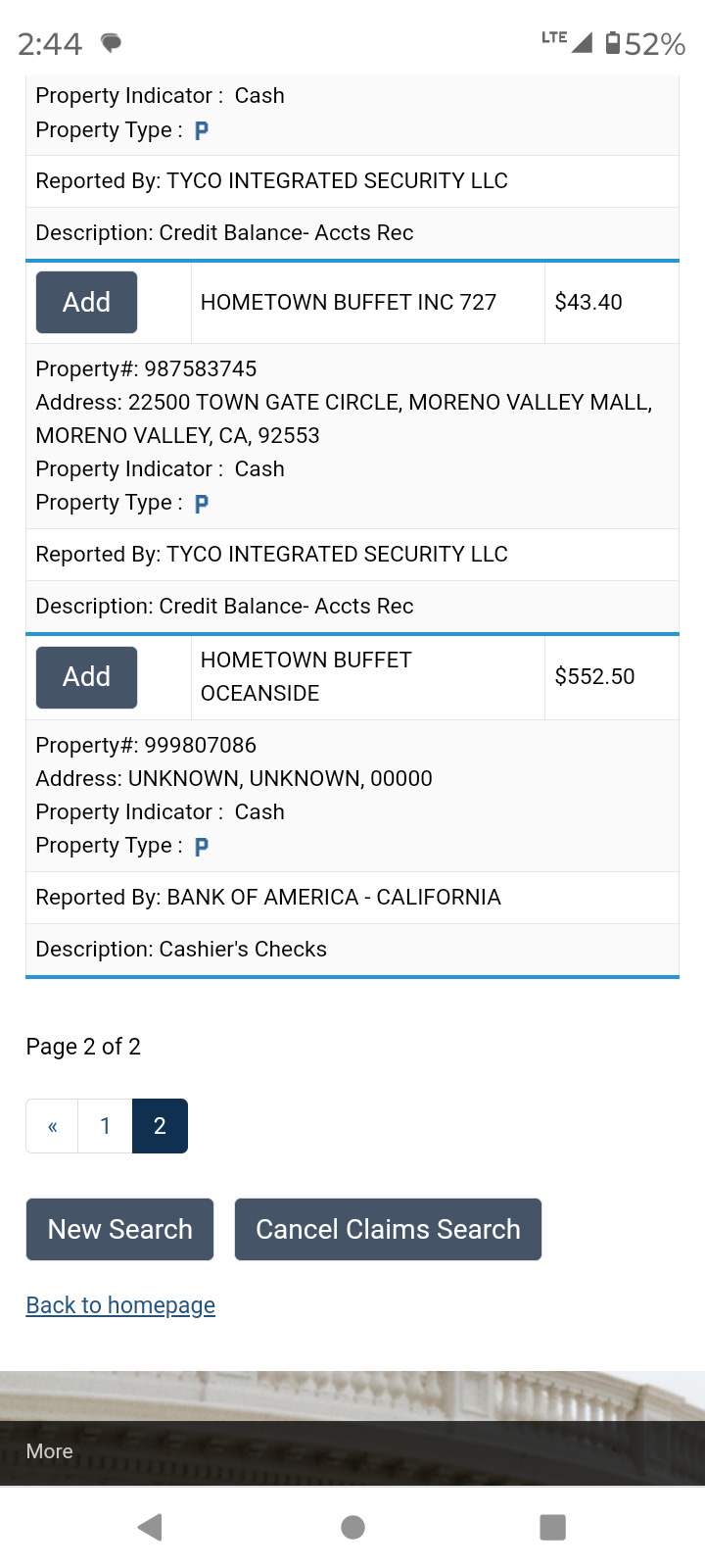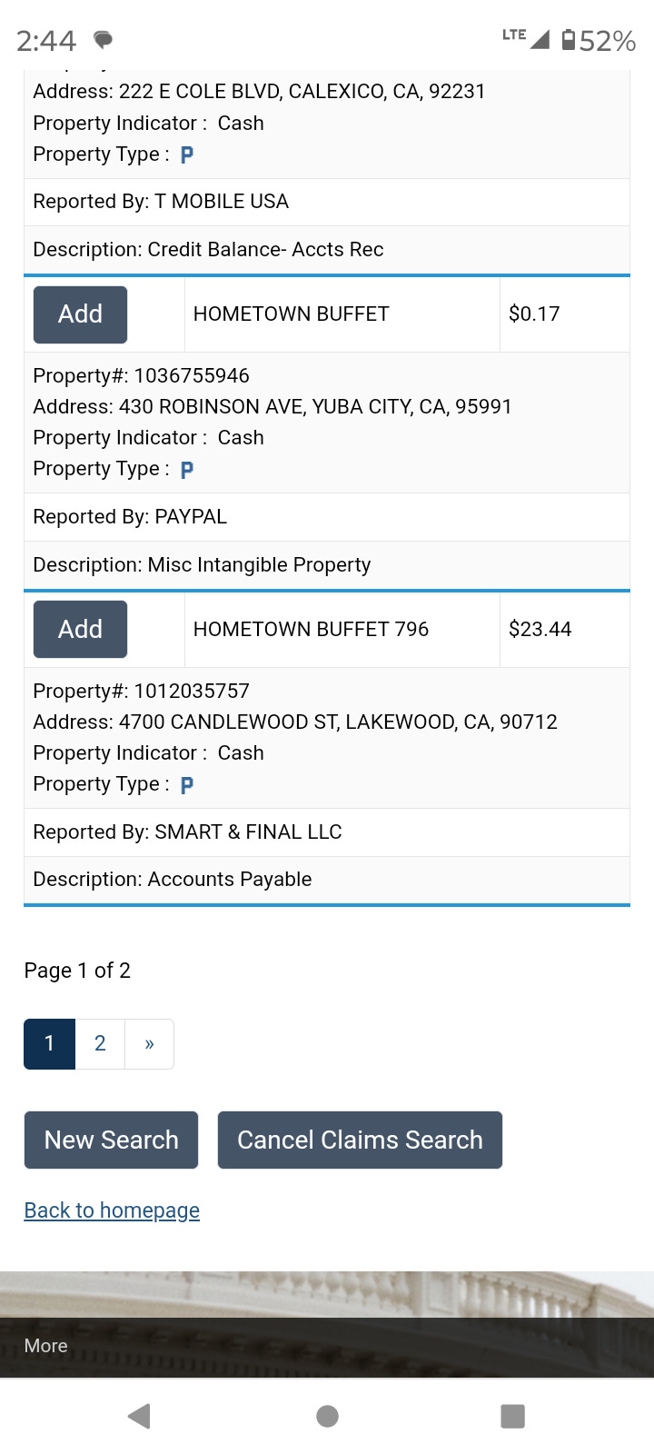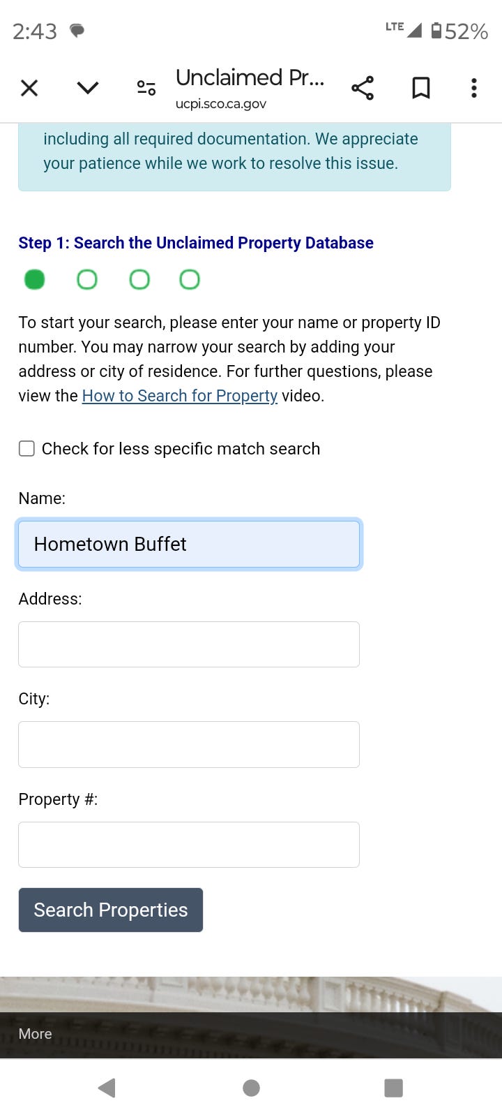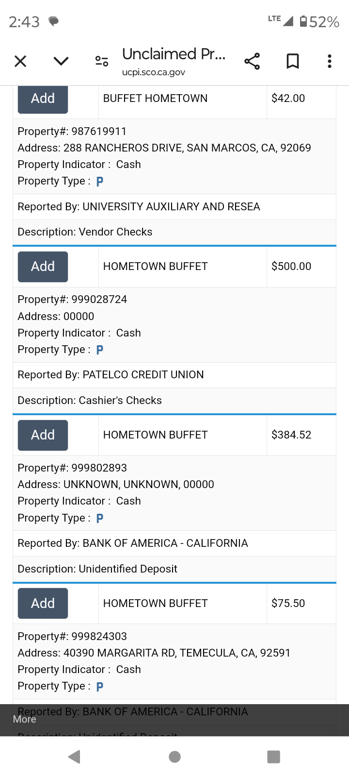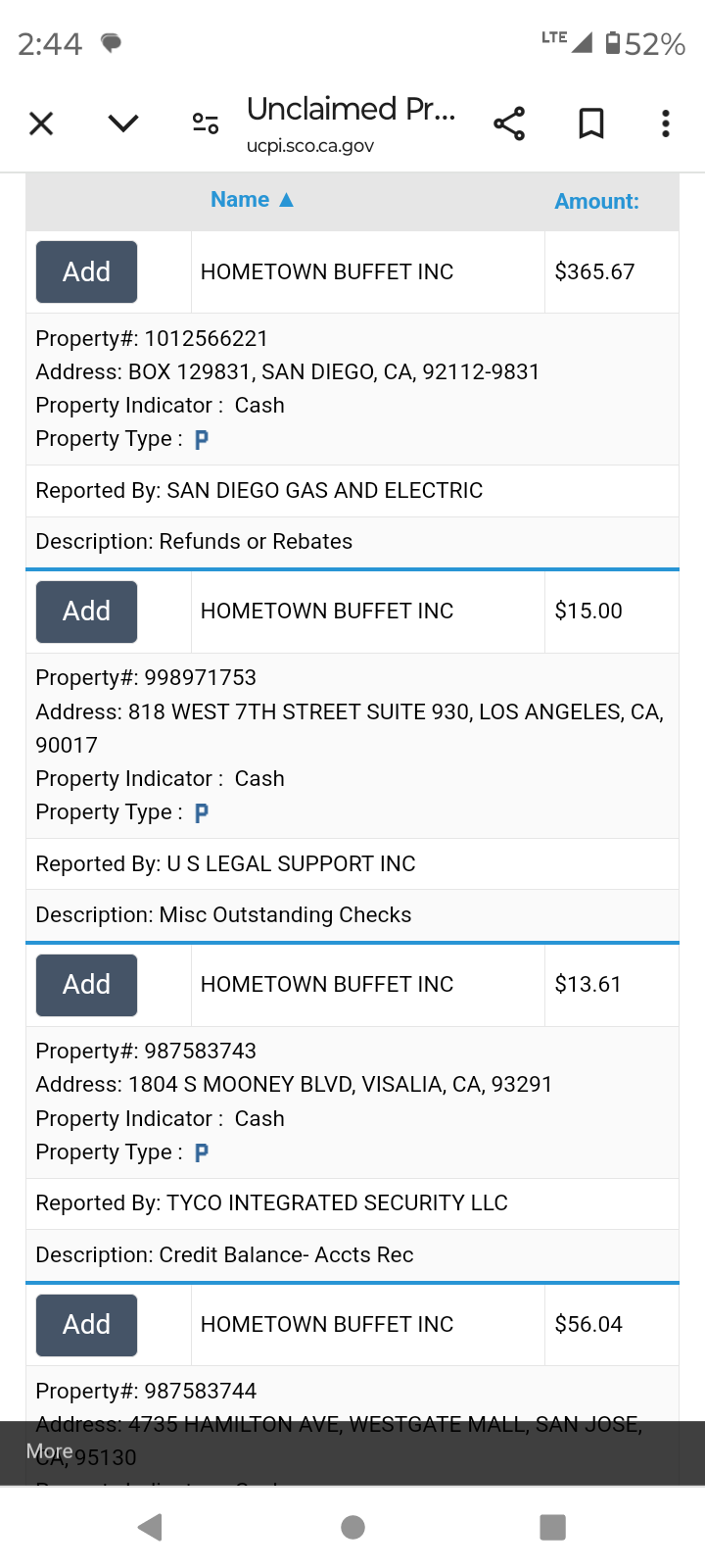 A voice says, “C. Dennis Scott, how many I help you?”. Once again, I stuttered my way through explaining that I was a big fan of Hometown Buffet, I have 6 kids who love eating there, and how I found a boatload of money in the California State Controllers Office. One account from Coca Cola Bottling Company was for $64,941!!!